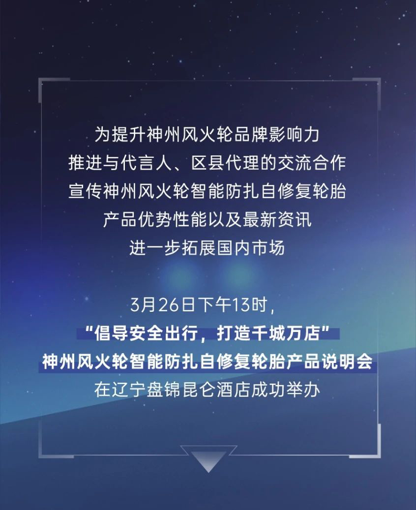 【盤錦站】“倡導(dǎo)安全出行,打造千城萬店”神州風火輪智能防扎自修復(fù)輪胎產(chǎn)品說明會